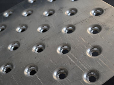 特点:具有防滑\抗锈\防腐的特点且坚固耐用外形美观,冲孔孔型有凸起人字型、有凸起十字花型,圆型,鳄鱼嘴型防滑板、泪珠型都为数控冲孔。